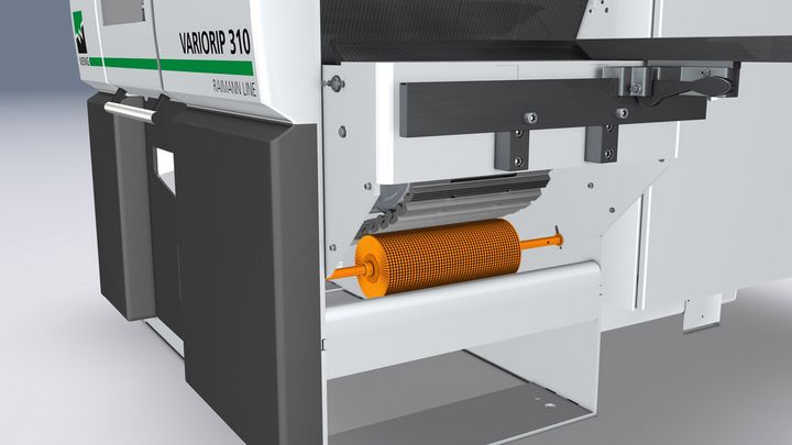 El cepillo de cadena giratorio libera la cadena de avance de manera fiable de la contaminación por resina o aserrín. El diseño tipo gofre de la cadena se mantiene limpio y conserva así su máxima adherencia. Se garantiza así el mejor paso posible de la pieza a través de la máquina.